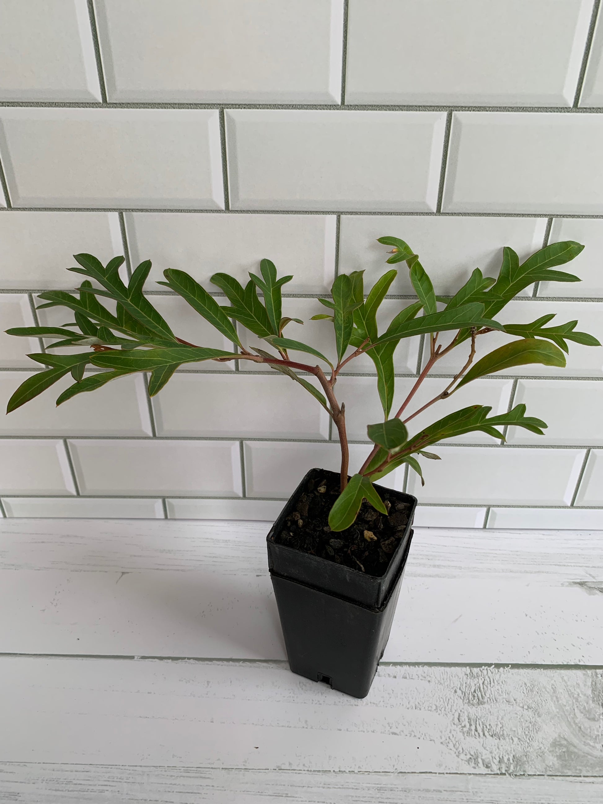 A prostrate cultivar with dark green foliage and bears deep pink-red flowers for most of the year.